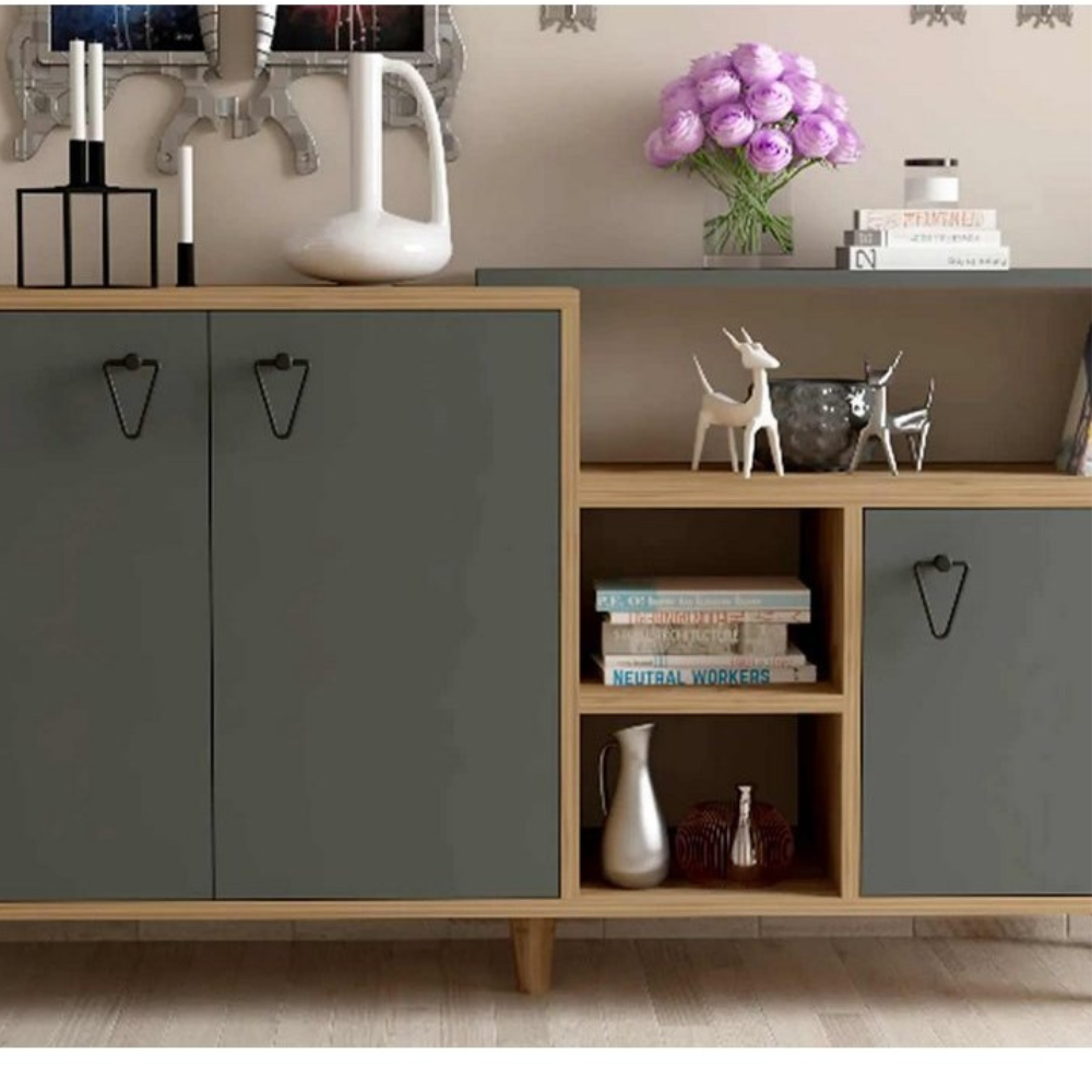 اختيارك المثالي بوفيه خشب بيج ورمادي بمساحة تخزين كبيرة